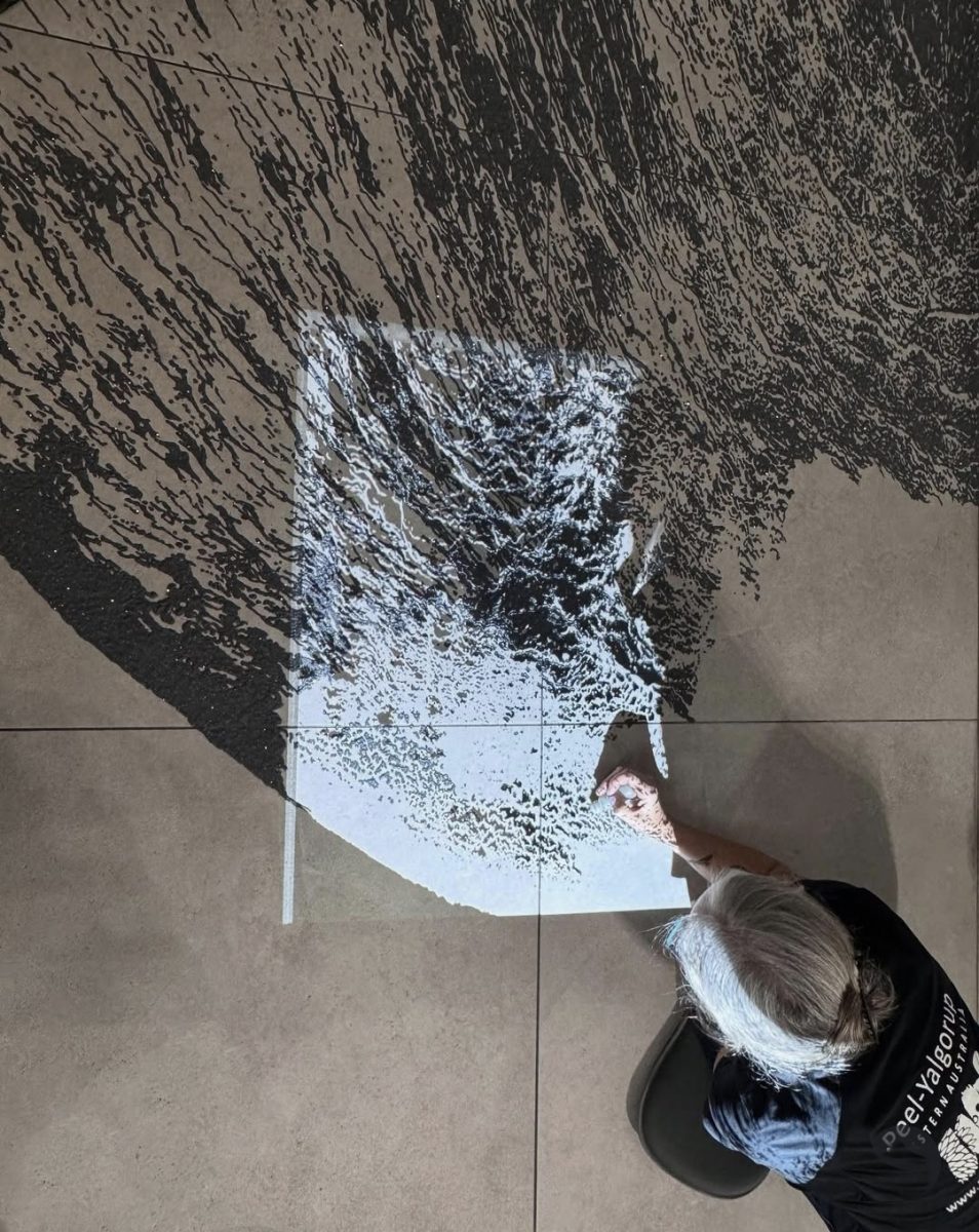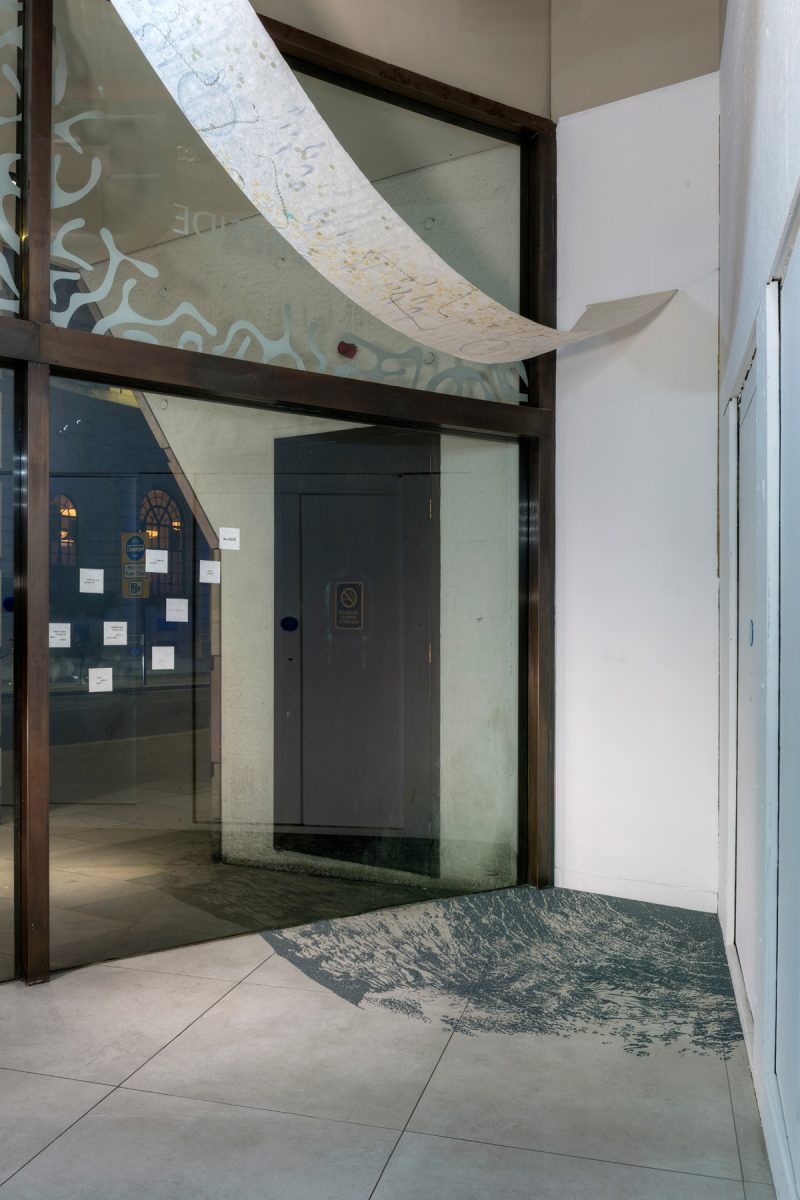 Responding directly to the unseen subterranean springs and rivers running silently beneath our feet these works visualise the unheard resonances created as water flows through and over rock.